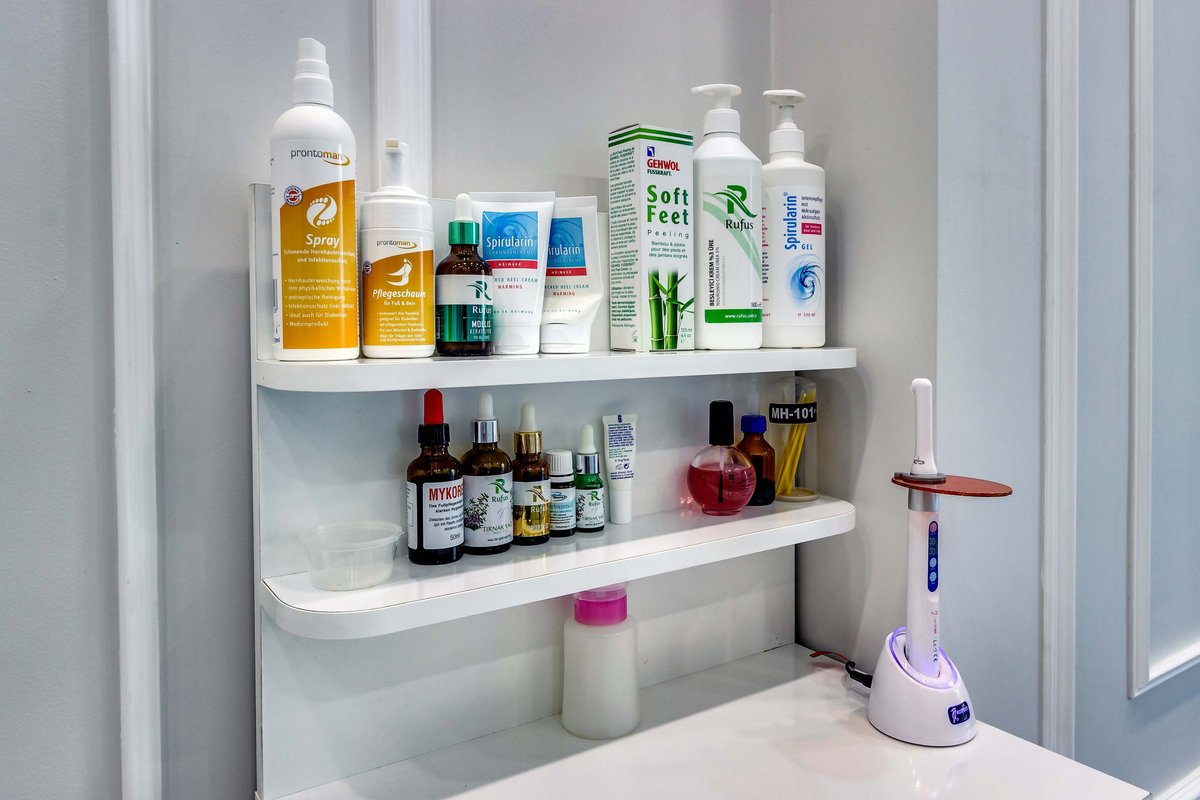 На пальцах и стопах могут иногда образовываться огрубевшие участки, и при непрофессиональном обращении с этими проблемами с лёгкостью можно получить микротрещинки на коже. Аппаратный педикюр идеально подходит в таких случаях, так как в нём обрабатываются сухие ноги. Специальные насадки для прибора не срезают, а постепенно удаляют кожу, поэтому она не начинает интенсивно нарастать. Для стоп, кутикулы и ногтевой пластины мастер использует размер сменного наконечника с учётом твёрдости материала (алмазные или керамические фрезы), регулируя количество оборотов в минуту исходя из зоны. По желанию клиента он может сделать интересный дизайн на ногтях.